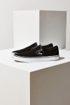 Classic slip-on sneakers from Vans. Canvas uppers topped with elastic paneling for an easy slip-on construction. Complete with a super padded ankle collar and a cushioned foot bed for added comfort. Finished with a vulcanized rubber midsole and a textured rubber sole for optimal traction.